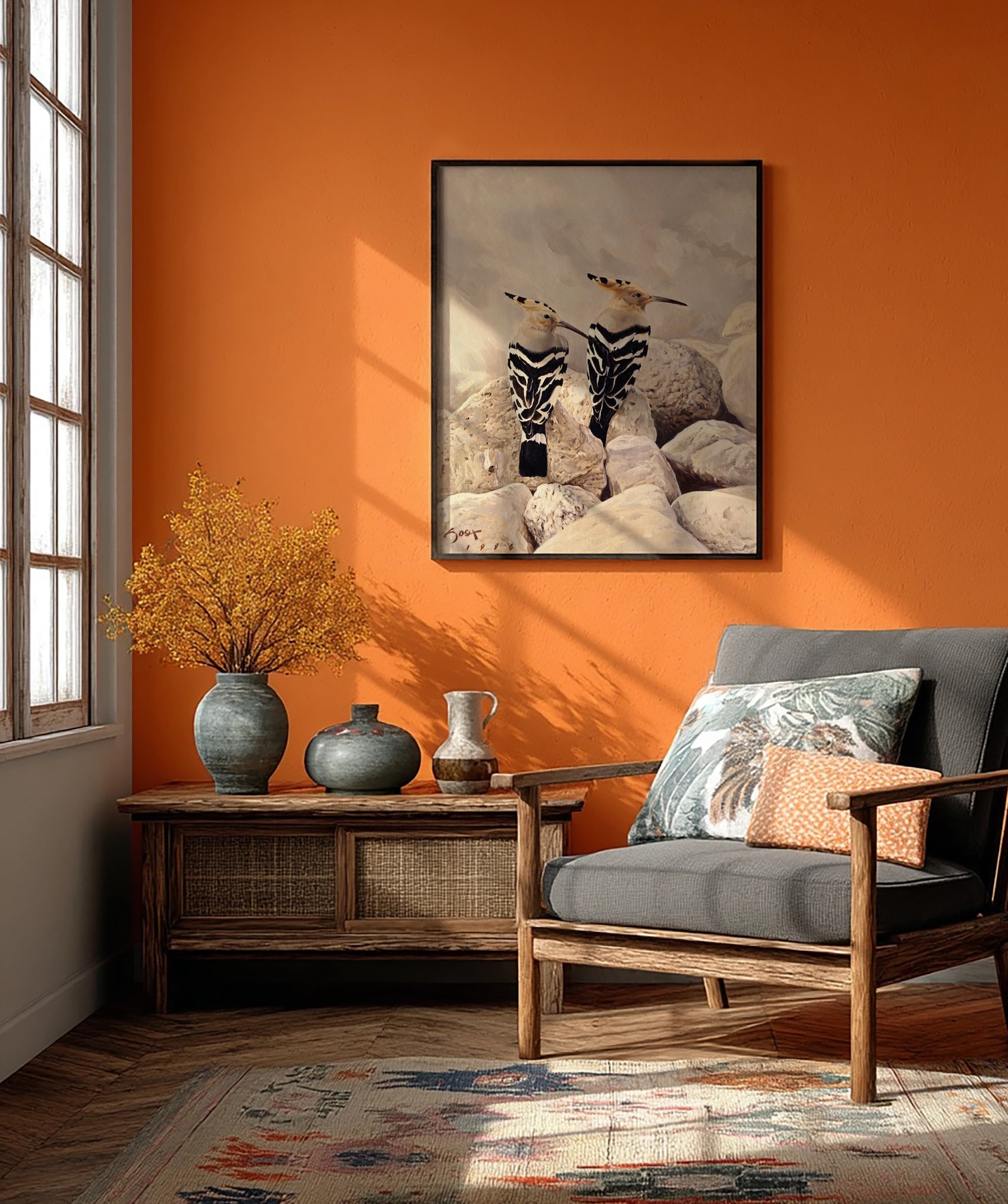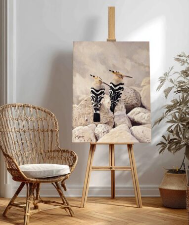 Una pareja de Abubillas pintadas al óleo sobre lienzo. Una de mis primeras pinturas, allá por el año1996. Oleo sobre lienzo. Manuel Sosa © 1996