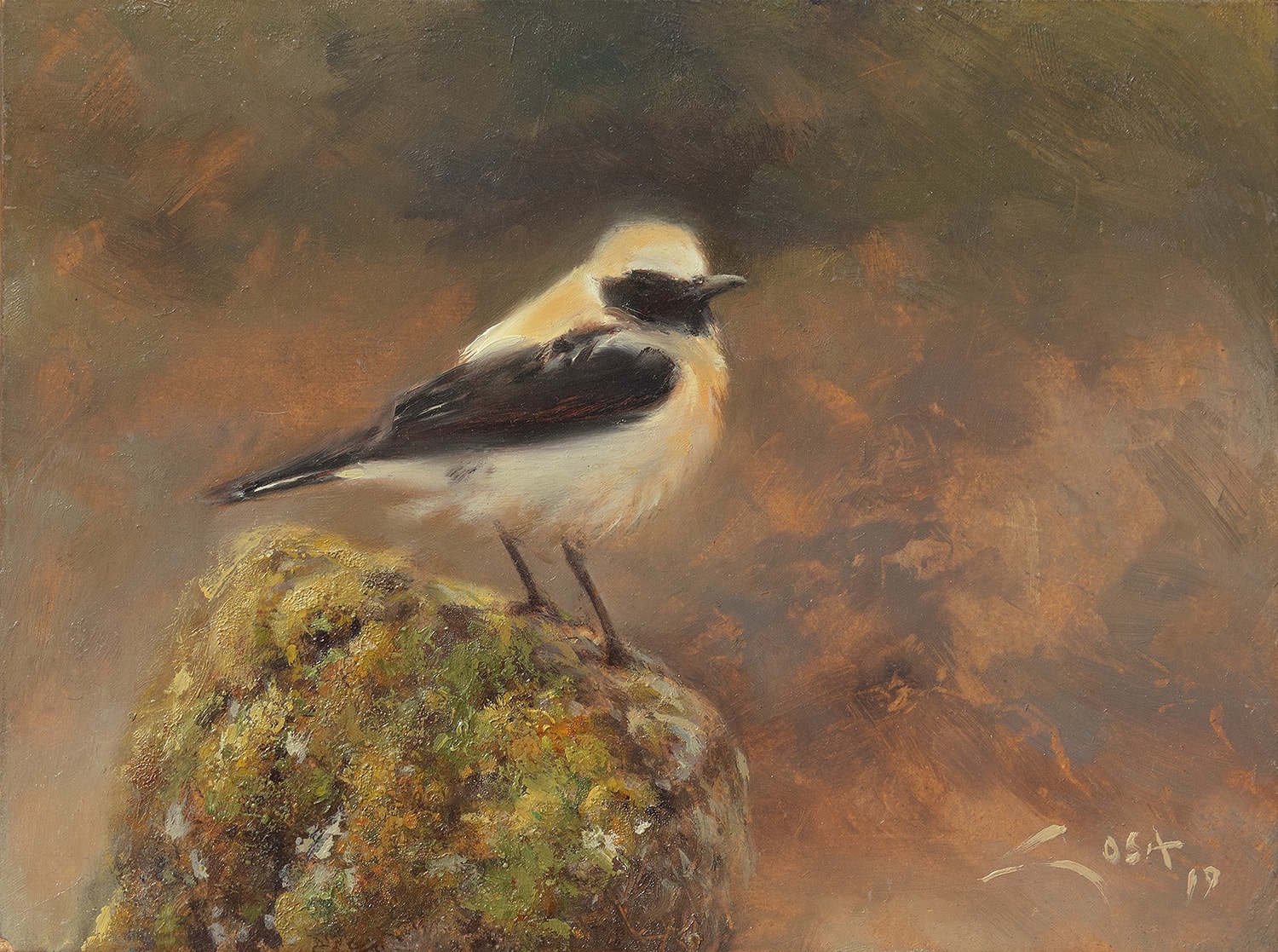 La Collalba rubia, siempre alerta. Óleo sobre tabla. Manuel Sosa © 2019